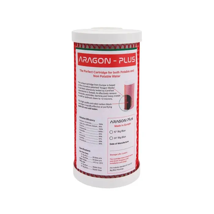 Time to change your filter? Replace your filter and get the 10" x 4.5" 2 Micron Geyser Aragon Filter Cartridge. Features Aragon's unique filtration technology which combines mechanical; ion exchange, adsorption; and electric adsorption filtration methods. This filter suits 10" x 4.5" Housings/Casings