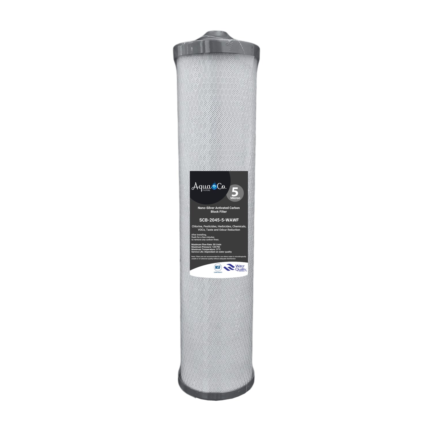Model: AquaCo 20" x 4.5" 5 Micron Silver Carbon Block Cartridge