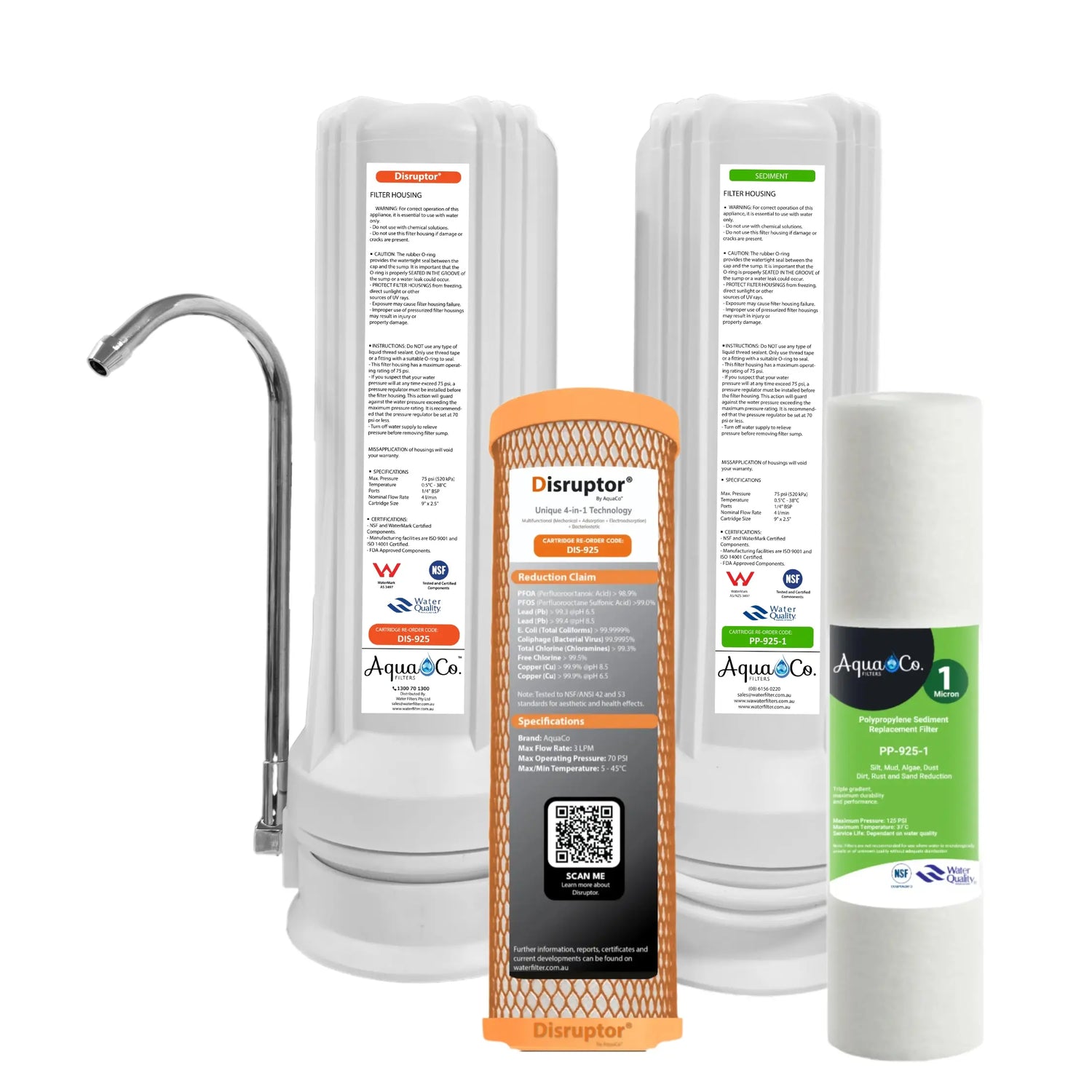 AquaCo® CTOP-925SD Countertop Water Filter - Reduces PFAS Compounds, Chlorine, Taste, Odours, Parasites, Viruses, Bacteria, and Lead.