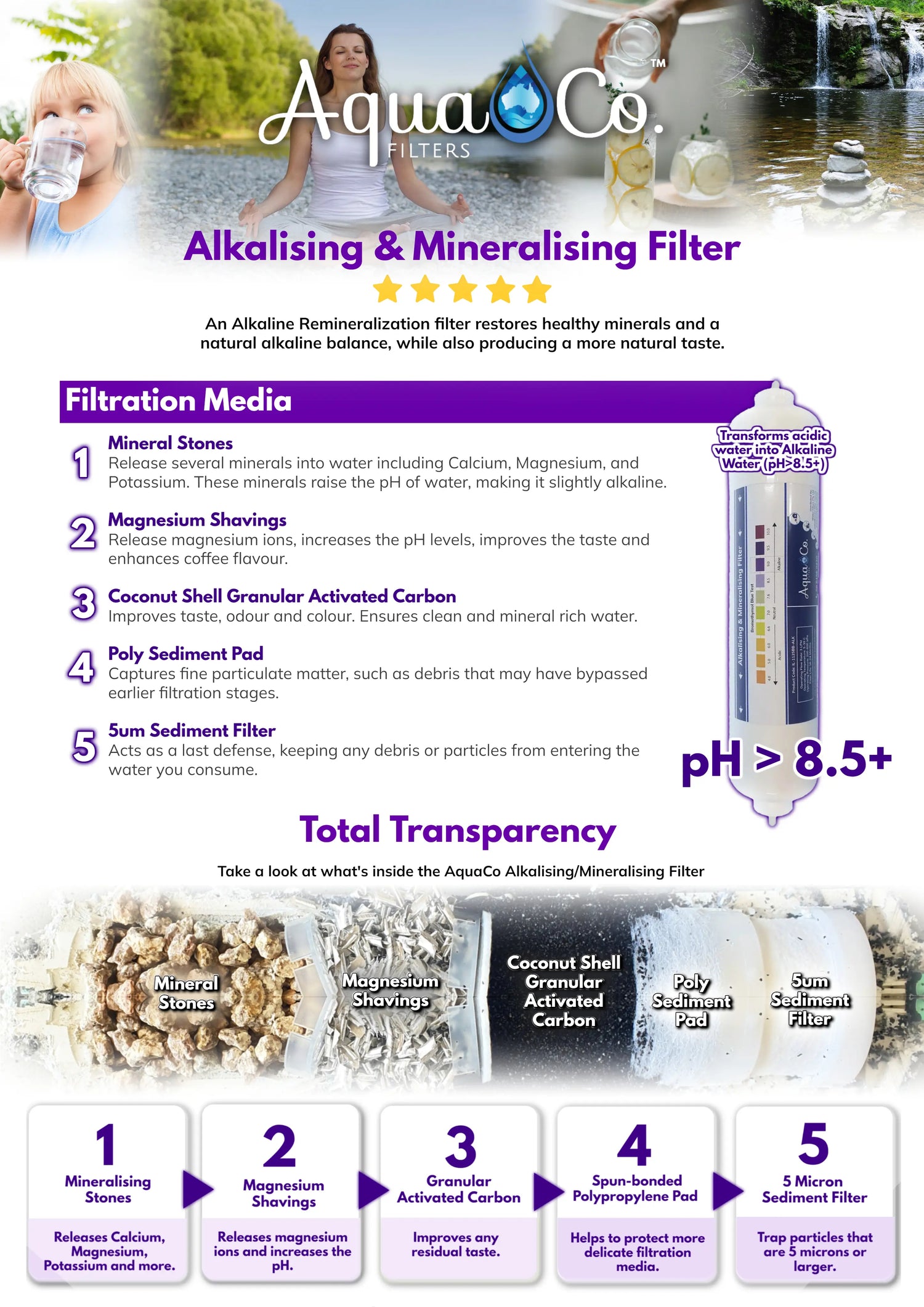 ‣ 3rd Stage: 11″ x 2.5″ Alkalising filter (Replace every 2 years)