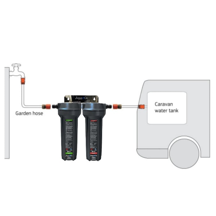 Drink pure, filtered water while travelling with our compact two-stage system.