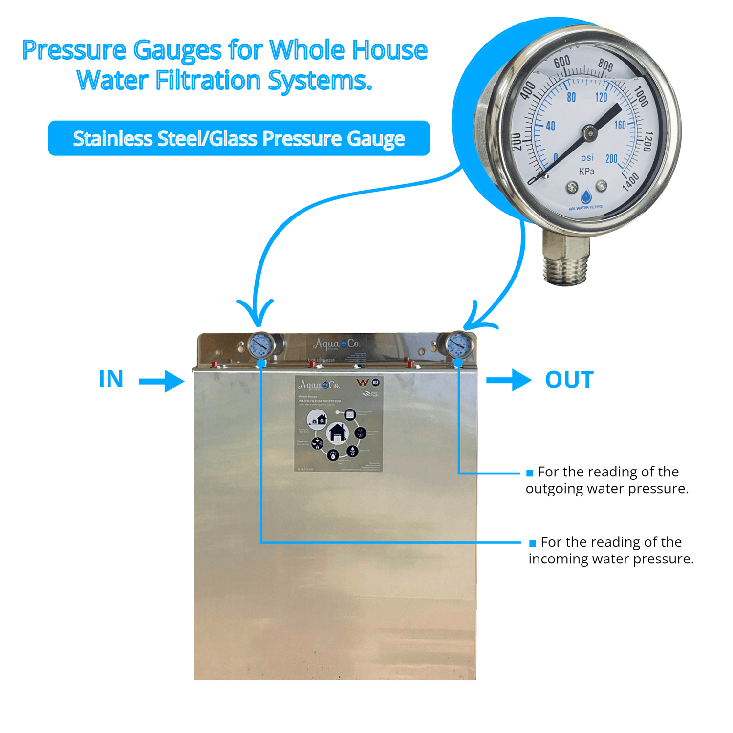 - It is recommended to have one pressure gauge for the reading of the incoming water and another one for reading of the outgoing water.