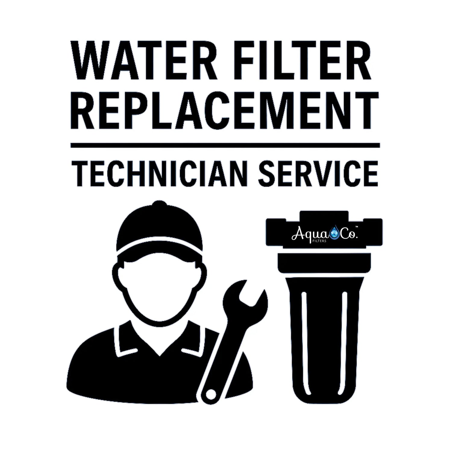 Professional water filter replacement performed by one of our qualified technicians at your location. This service ensures correct installation and optimal performance of your AquaCo water filtration system.